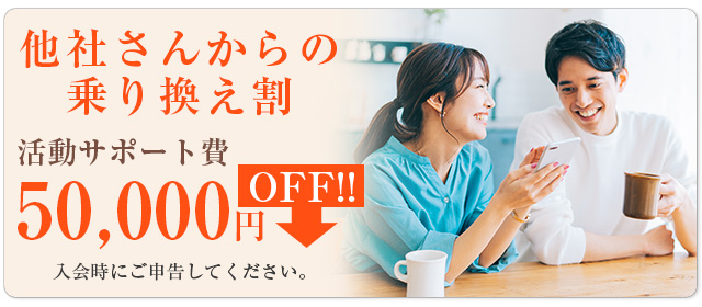 自分のペースで活動したい方には「マイペースプラン」を、20代の方には「20代限定プラン」を、医師・歯科医師の方には「ドクタープラン」を、短期で成婚を決めたい方には「プレミアムプラン」を、ネット来店予約を頂いた方には初期費用の各種割引制度をご用意して各世代の婚活を24時間・年中無休でサポートしています。